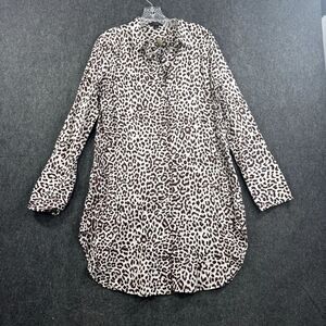 J.Crew Dress Voile Beach Shirt Women's Medium Biege Leopard Print