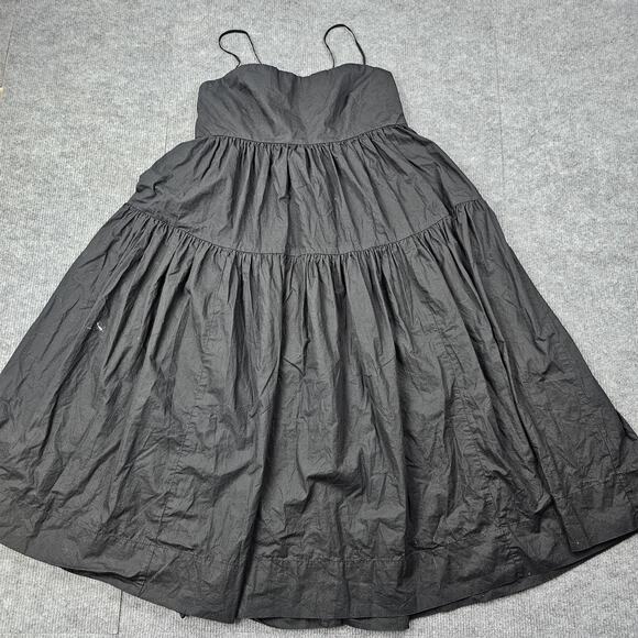 J.Crew Dress Womens 6 Black Poplin Tiered Babydoll Tea Midi Minimal Classic