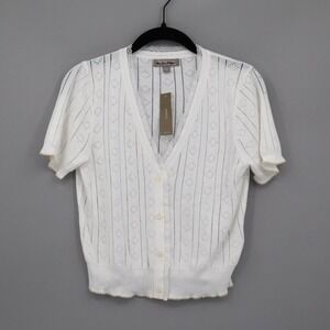 J.Crew Egyptian Cotton Pointelle Cardigan Womens Small White Cottagecore NWT