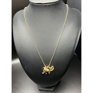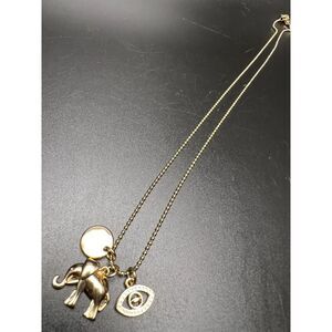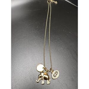 J.Crew charm necklace with elephant, watchful eye, and flat disk charms.