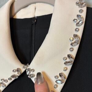 This elegant J.Crew black shift dress is crafted from premium fabric and detailed with a sparkling jeweled white collar for a timeless, polished look. Perfect for work, cocktails, or holiday events, its tailored silhouette transitions seamlessly from desk to dinner.