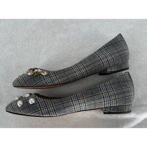 J.Crew Embellished Plaid Sally Poppy Ballet Flats With Pearl & Gem Accents