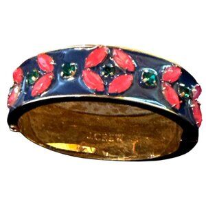 A stunning piece of craftsmanship, this J.Crew bangle features vibrant pink and green floral accents set against a glossy navy enamel background. Its gold-tone edge adds a sophisticated touch, making it a statement accessory. Ideal for elevating your wristwear collection, this bangle seamlessly combines charm and elegance.