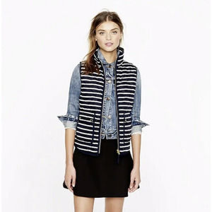 J.Crew Excursion Quilted Down Feather Gold Button Navy & White Stripe Vest