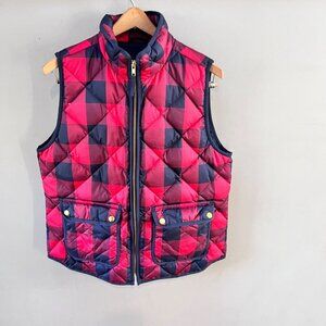 J.Crew Excursion Quilted Red & Navy Plaid DownPuffer Vest Medium Polyester Women