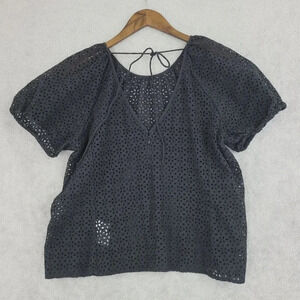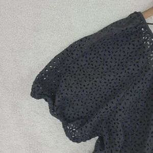 J.Crew Eyelet Black Cotton Blouse Womens Size 16 12PT