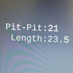 No visible flaws. Pit-to-pit = 21 inches, Length = 23.5 inches.