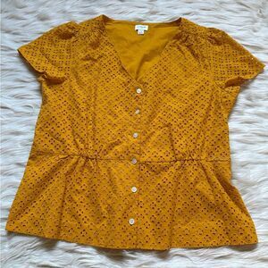 J.Crew Eyelet Peplum Button Front Top in Mustard - Size 14