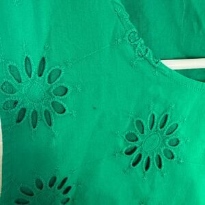 J.Crew Eyelet Shell Tank Top Women’s Size Medium – Item BZ799, Dublin Green Colorway, Sleeveless Crew Neckline, Delicate Eyelet Embroidery, Detailing, Fully Lined, Pullover Style, 100% Cotton Fabric, Lightweight and Breathable, Feminine and Polished Design, Ideal for Layering, Everyday Wear, or Warm-Weather Outfits.