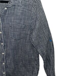 —Gingham Pattern —100 % Cotton —Button Closure —Sustainable —Functional Button at Cuffs —Chest Pocket —Machine Wash —Size L but runs small (measurements align more with a size M) —Great to wear over holidays — Great as a gift 21" Pit to pit | 25" Length (all laid flat ) This item is pre-owned and in excellent condition. Measurements in photos and in the above text. Ships from a smoke-free home, same/next day. Plaid, Gingham, Classic, Casual, Office, Outdoors, Preppy, Streetwear, Gifts, Holidays Other Listings: Eileen Fisher, Paig, L’AGENCE, Paige, A-line, Shift, J. Crew, Tory Burch, Zara, Veronica Beard, Nordstrom, Everlane, Burberry, Polo Ralph Lauren, Veronica Beard, Skims, Michael Kors, Quince, Eva Franco, Designer, Luxury, Mother, Frame, Kate Spade, Chanel, Gucci, Tommy Hilfiger, Kate Spade, Adidas, Anthropologie, Staud, Cashmere, Free People, Boho, Modern, Minimalist, Maison Jules, Rails, J Brand, Ugg, Lululemon, Nike, Coach, Birkenstock, Pol, Dior, Victoria’s Secret, Burberry, Polo Ralph Lauren