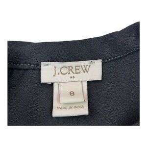 J.Crew Factory Crew Neck Key Hole Black Cap Sleeve Pleat Front 8 Gray Blouse