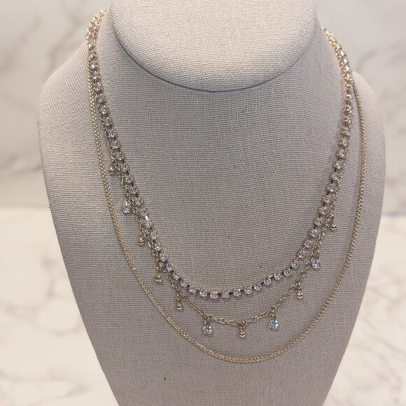 Gold-plated recycled-brass chain, steel chain, zinc, cubic zirconia.