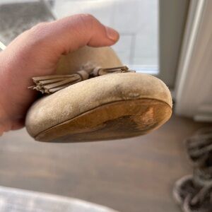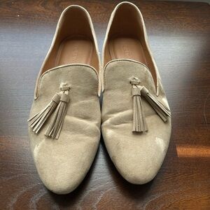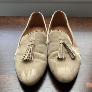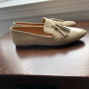 J.Crew Smoking Loafers with Tassels - faux suede in cream. Lightly worn - scuff on right toe (see pic) otherwise excellent condition!