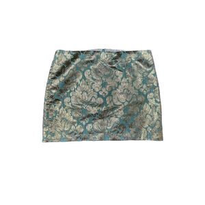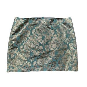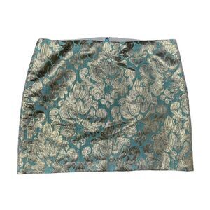J.Crew Factory Gilded Jacquard Skirt Turquoise & Gold Brocade Size 6