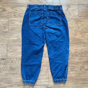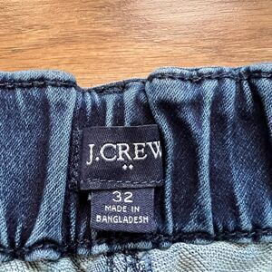 J.Crew Factory Utility Jogger Jean in Signature Stretch+ Size 32 Medium Wash. Style BT042. 86% cotton, 13% polyester, 1% elastane. There is some wear at the waistband and seams.