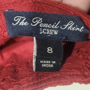 J.Crew Factory Lace Flower Pattern Burgundy Maroon Red Pencil Skirt sz 8 GUC