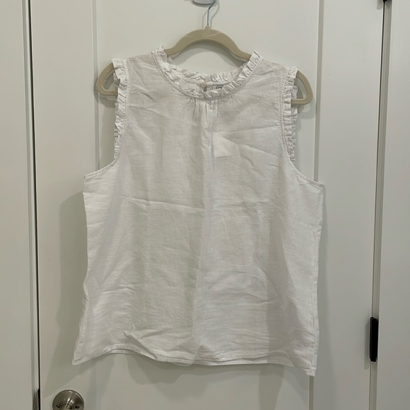 J-Crew Factory Linen-Blend Ruffleneck Top