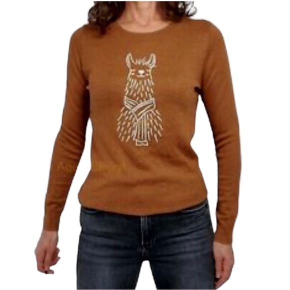 J.Crew Factory Llama With Scarf Sweater Camel Brown Size XSmall