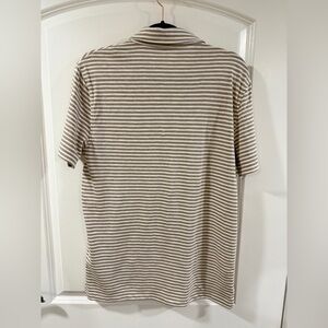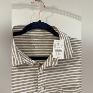 J.Crew Factory Men Polo Shirt M NWT Striped Slub Cotton Beige Tan Pocket Casual