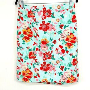 J. Crew Factory Blue 100% Cotton Vibrant Red Floral Pencil Skirt