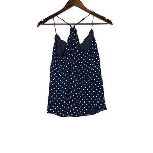 (0863) J.Crew Factory Navy Blue and White Polka Dot Scalloped Cami Tank Top Size 0.