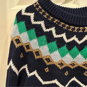 J. Crew Factory Navy Green Gold Long Sleeve Fair Isle Fisherman Sweater Small