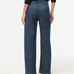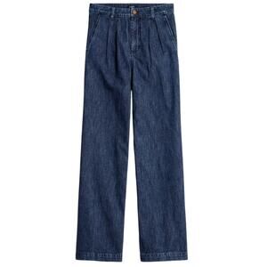 J.Crew Factory wide leg jeans, pleated denim trousers, high rise wide leg, navy blue jeans, workwear denim, trouser jeans, vintage inspired denim, elevated casual, classic style jeans, J.Crew Camden Wash