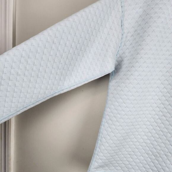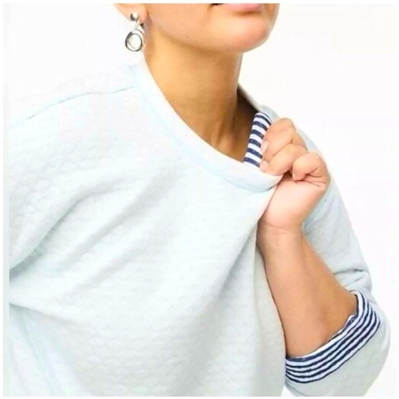 Two looks in one—this J.Crew Factory reversible pullover sweatshirt is a wardrobe win. One side features a soft quilted light blue texture, while the reverse boasts a navy and white striped pattern. Perfect for casual days, travel, or layering.