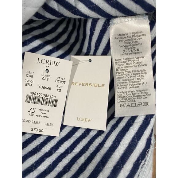 J.Crew Factory Reversible Pullover Sweatshirt XS Blue Striped Quilted NWT Cozy