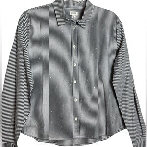 J.Crew Factory Rhinestone Modern Button Down Stripe Cropped Shirt