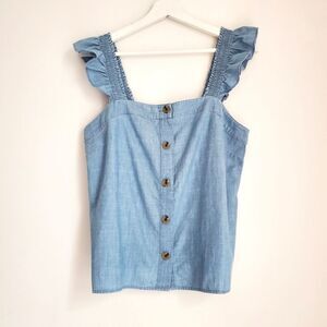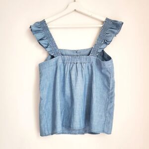 J.Crew Factory Ruffle Sleeve Denim Square Neck Button Top Size S