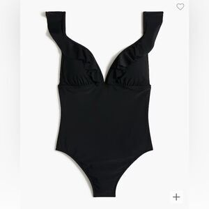 J.Crew Factory Ruffle-shoulder V-neck one-piece swimsuit