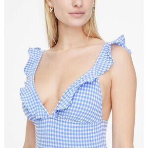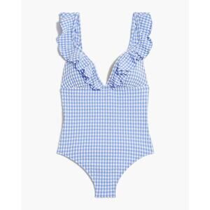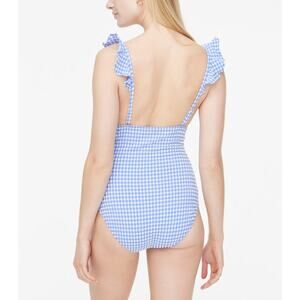 J.Crew Factory Seersucker Ruffle Shoulder V Neck One Piece Swimsuit - S