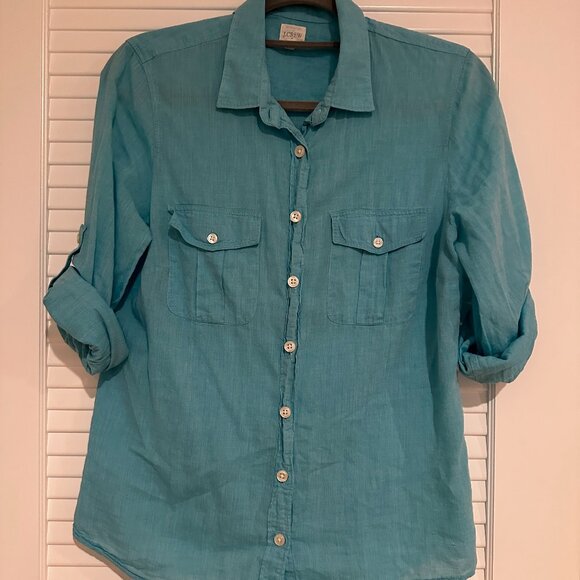 J.Crew Factory Short-Sleeve Button-Up Shirt – Turquoise Blue – Size S