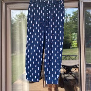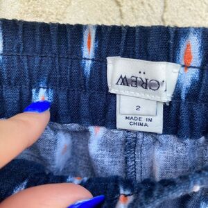 J.Crew Factory Size 2 Linen Cotton Blend Blue Pants Aztec