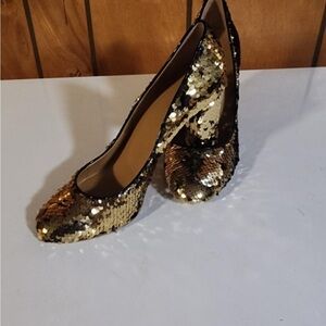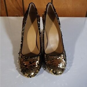 JCrew Factory Size 8.5 Gold Black Sequins Heels Pump 5 EUC **