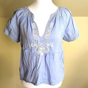 J.Crew Factory Small Blue Embroidered Blouse