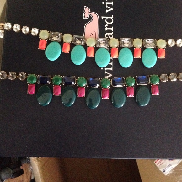 Brand new never worn J.Cree necklaces. The deep blue one lost 1 gem near the clasp (you cannot see it when it's wrapped around the neck). Each is $62.50, tags attached reflect original retail price. Selling both in the picture for $95. Items come with a J.Crew cloth bag to store. Send me offers