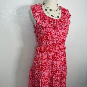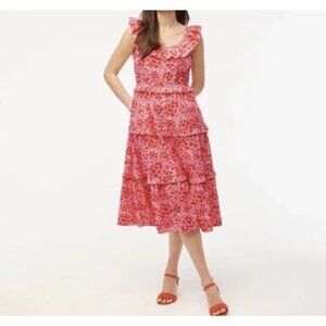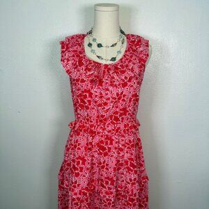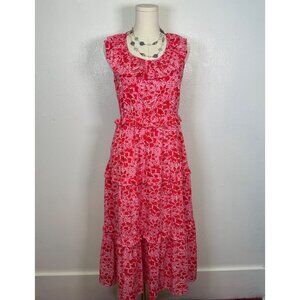 J.Crew Factory Tiered Midi Dress Ruffle Floral Red Pink Sleeveless Pockets Lined Women's Size 8