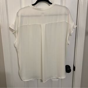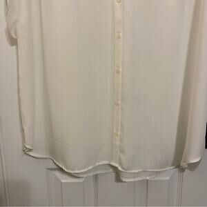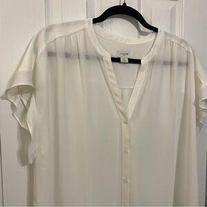 J.Crew Factory White Short Flutter Sleeve Semi-Sheer Button Up Blouse Size XXL