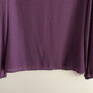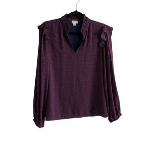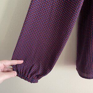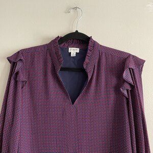 J.Crew Factory Women M Blue Red Printed Long Sleeve V-Neck Ruffle Popover Top.