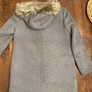 J.Crew Factory Women’s Gray Peacoat with Fur-Trim Hood – Size 6