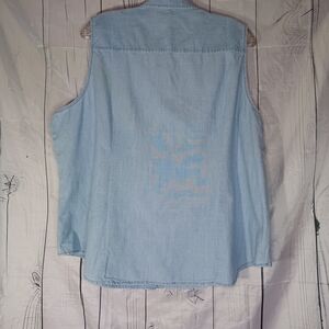 J.Crew Factory Women's Light Blue Button Up Sleeveless Top with round hem NWT