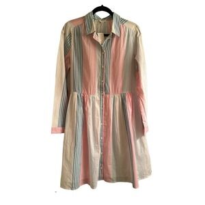J.Crew Factory Women's Long Sleeve Button Up Mini Shirt Dress Size 12 Multi