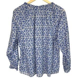 J.Crew Factory Women's Top Blue White Micro Floral Paisley Split Neck