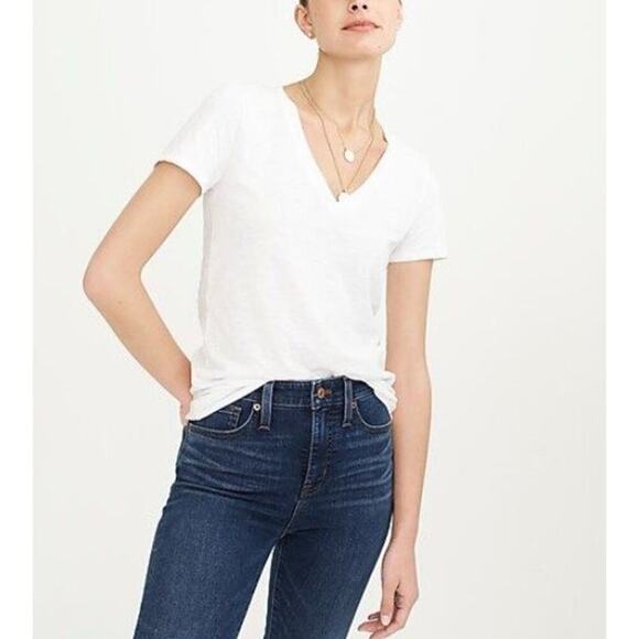 JCrew Factory Womens Vintage Slub 100% Cotton V-Neck Tee H5967 White Sz XXS NWOT