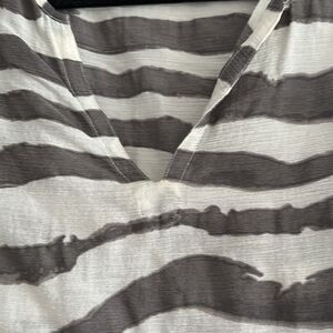 J. Crew Factory Women’s Grey & Ivory V Neck Striped Blouse. 20” pit to pit. 26” shoulder to bottom hem. Made of cotton gently worn. Size S.