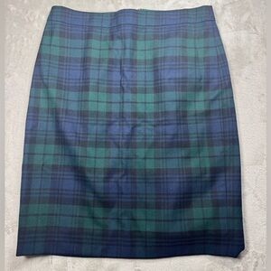 J.Crew Factory Wool Blend The Pencil Skirt Blue Black Green Tartan Plaid Size 6