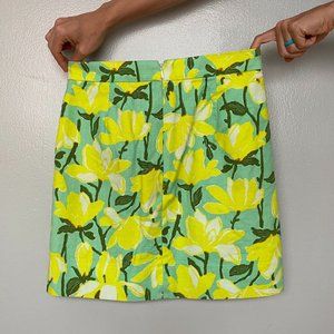 J.Crew Factory bright floral basketweave textured mini pencil skirt. Spearmint green with vibrant yellow flower detail. Has pockets and a zip back.