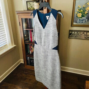 J.Crew Factory women’s sleeveless tweed & eyelet sheath dress, knee length, fully lined, clasp & zip back.